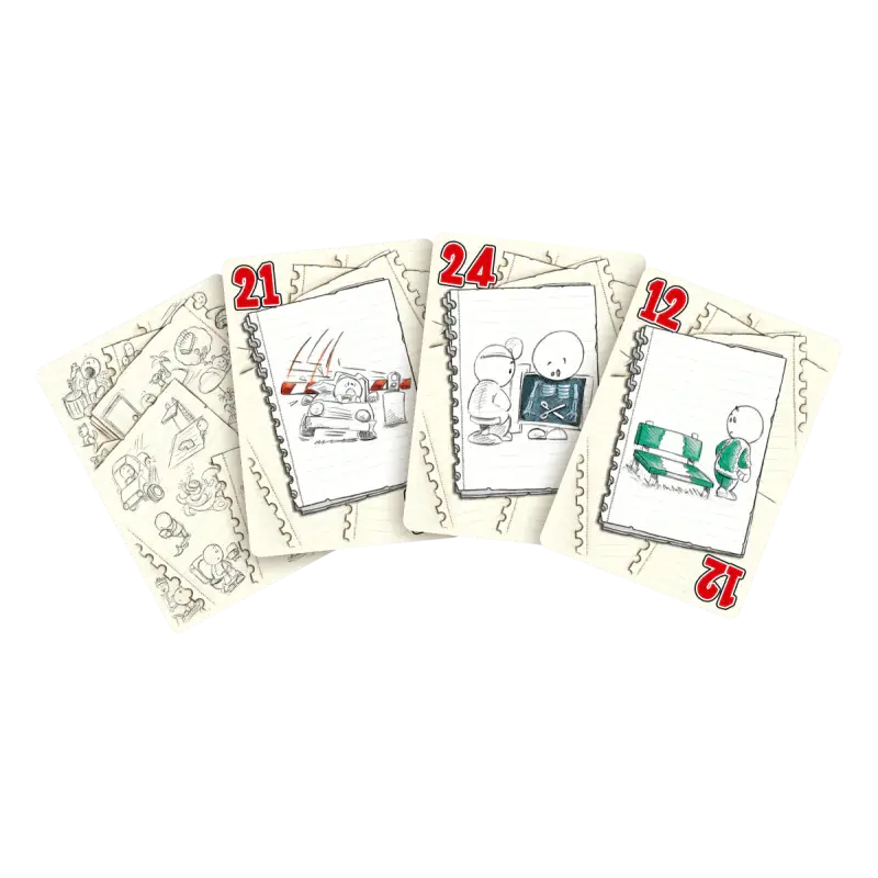 - Gra kończy się, gdy ktoś weźmie ostatnią kartę ze środka stołu.