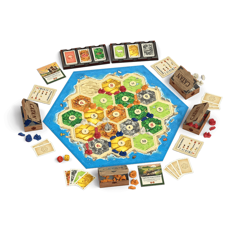 Jesteście pierwszymi osadnikami, którzy przybyli na wyspę Catan. Szybko wznosicie pierwsze osady i budujecie pierwsze drogi. Okoliczne tereny zapewniają wam surowce niezbędne do rozwoju. Handel kwitnie, a osady rozrastają się do miast. Jednak po pewnym czasie na wyspie zaczyna brakować miejsca – wtedy rozpoczyna się walka o ziemię, surowce i władzę. Pora wprowadzić w życie wasz błyskotliwy plan, licząc przy tym na odrobinę szczęścia!