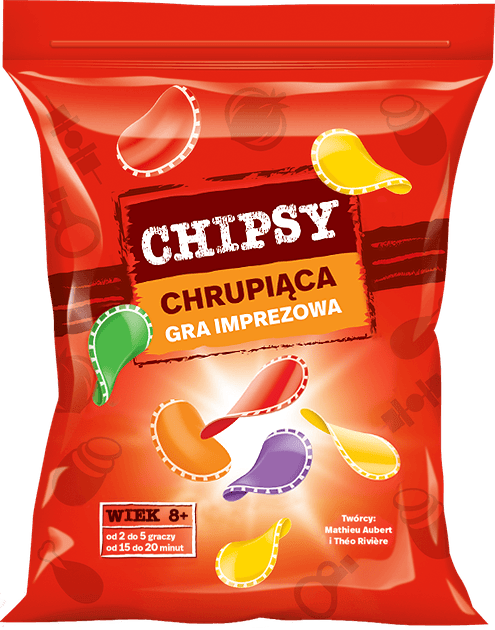 Chipsy to wciągająca niczym najpyszniejsza przekąska i doprawiona emocjami gra imprezowa, w której próbujemy oszacować prawdopodobieństwo zrealizowania kart celu. Na początku gry uczestnicy otrzymują ich po 6, a każdy związany jest z układem lub kolejnością pojawiania się kolejnych przekąsek. W toku gry będziemy odrzucali kolejne karty, zastanawiając się, czy warto postawić na bardziej wartościowy, ale ryzykowny cel. A może pewne punkty to dobre punkty, niezależnie od okoliczności?