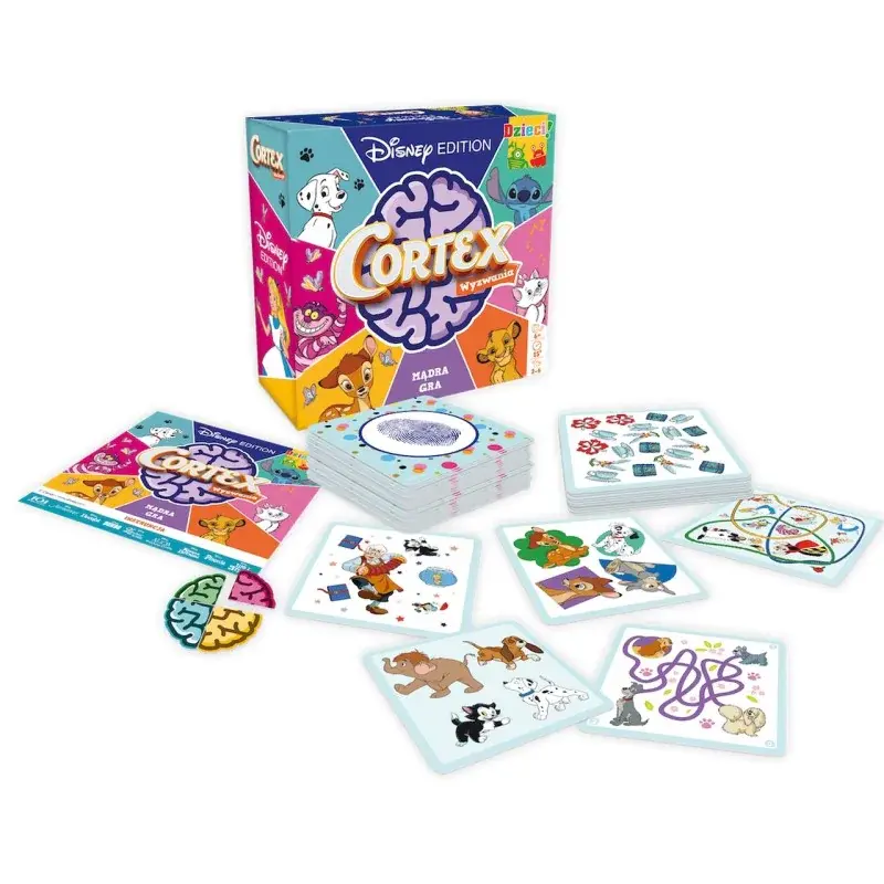 Cortex Disney to nie lada gratka dla małych i dużych fanów bajek Disneya, którzy chcą spróbować swoich sił w rozwiązywaniu łamigłówek. W każdej rundzie na stole pojawia się karta z zadaniem. Ten, kto rozwiąże je jako pierwszy, musi przykryć ją ręką i głośno podać odpowiedź. Wśród wyzwań znajdziecie labirynty, lustrzane odbicia i wiele, wiele więcej!