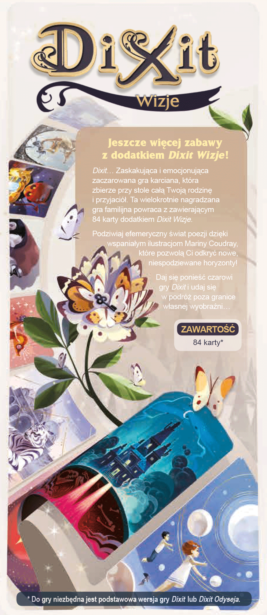 Odkryj nowe pokłady skojarzeń, daj ponieść się wyobraźni i wyrusz na poszukiwanie wizji. Przy pomocy nowych kart Wasze rozgrywki w Dixit będą jeszcze ciekawsze.