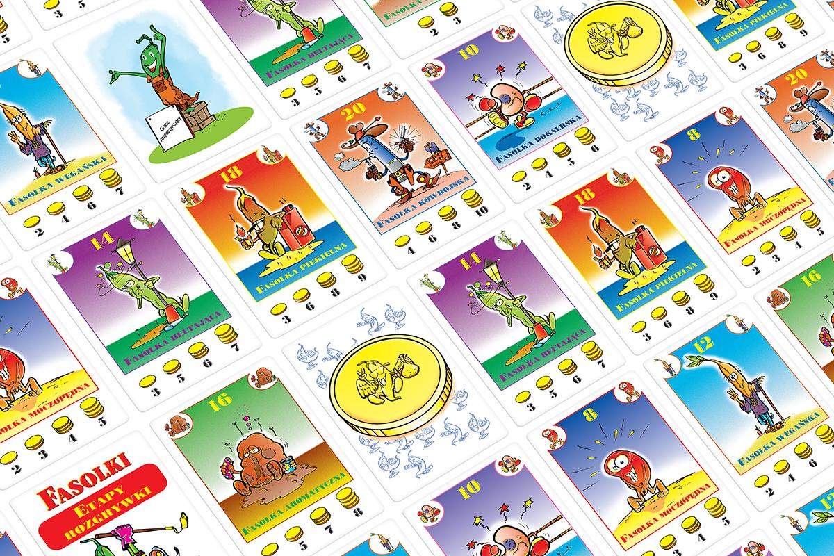Jeśli uważasz, że strączki to po prostu warzywa, bardzo się mylisz – w grze karcianej Fasolki to niezwykle cenna waluta! Podczas zabawy każdy uczestnik uprawia swoje pola z fasolą, którą będzie chciał jak najdrożej sprzedać. Oczywiście wraz ze wzrostem rośliny rośnie też jej cena. Handluj z pozostałymi graczami i wystrzegaj się przedwczesnych zbiorów!
