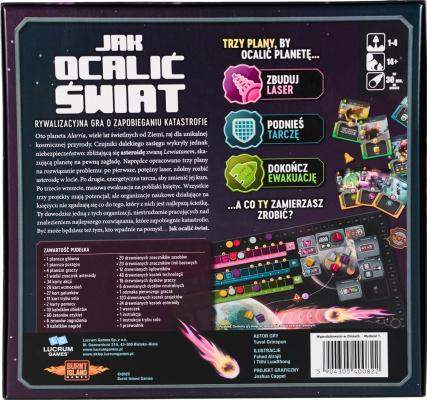 Jak ocalić świat to ambitna gra strategiczna, w której gracze stają przed wyzwaniem zarządzania zasobami, opracowywania nowych technologii i podejmowania kluczowych decyzji, które wpłyną na losy planety. Rozgrywka opiera się na cenionych mechanikach, takich jak worker placement, deck building czy bag building, co zapewnia emocjonujące i zróżnicowane doświadczenie każdemu uczestnikowi.