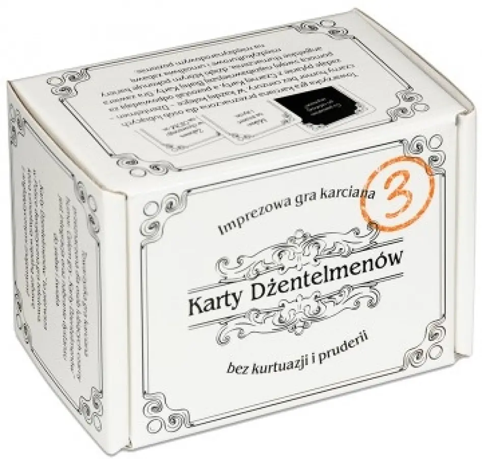Karty Dżentelmenów: Epizod Trzeci to imprezowa gra dla 3 do 15 graczy, którzy muszą wyzbyć się kurtuazji i pruderii. Sprawdź na ile grzeczni są Twoi znajomi!