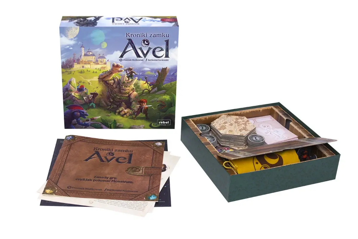 Kroniki zamku Avel to oparta na współpracy gra planszowa dla całej rodziny, w której wcielamy się w bohaterów i bohaterki odpowiedzialnych za uratowanie magicznej krainy. Podczas rozgrywki stworzymy własne postacie o unikalnych imionach i specjalnym ekwipunku, a następnie będziemy eksplorować świat, poruszając się po modułowej planszy. W czasie podróży napotkamy wiele niebezpieczeństw, z którymi będzie trzeba walczyć, a każde zwycięstwo przyniesie nam określoną nagrodę: nową broń, zbroję, eliksiry i złoto. Zgromadzone dobra pozwolą nam przygotować się do finałowego starcia z Monstrum, które zagraża królestwu Avel.