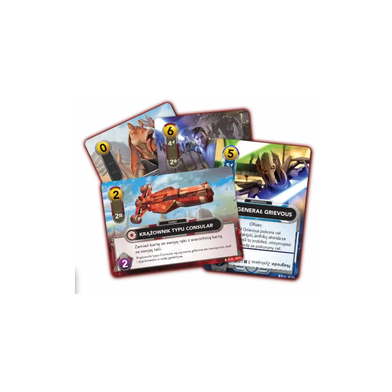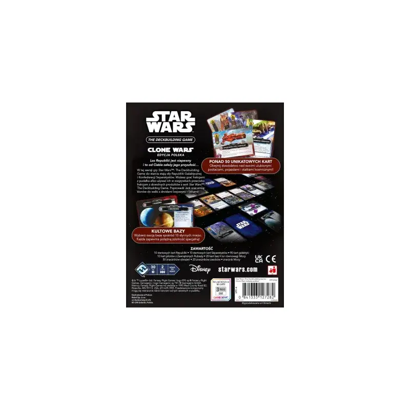 Star Wars: The Deckbuilding Game - Clone Wars to niezwykle emocjonująca i łatwa do nauczenia dwuosobowa gra karciana, która przeniesie potyczki z okresu Wojen Klonów prosto na Wasz stół. Każdy gracz stanie się stroną tego konfliktu – jeden pokieruje siłami Republiki, drugi poprowadzi Separatystów. Na przestrzeni gry obaj będą stale ulepszać swoje talie, kupując coraz potężniejsze okręty i werbując nowe jednostki, aby zwiększyć swoją siłę rażenia i pozyskiwać więcej zasobów. Wszystko po to, by zyskać przewagę, która przesądzi o losach konfliktu.
