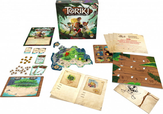 Toriki: Wyspa rozbitków łączy tradycyjną grę planszową z aplikacją na urządzenia mobilne, oferując interaktywne doświadczenie wzbogacone pięknie ilustrowanymi komponentami.