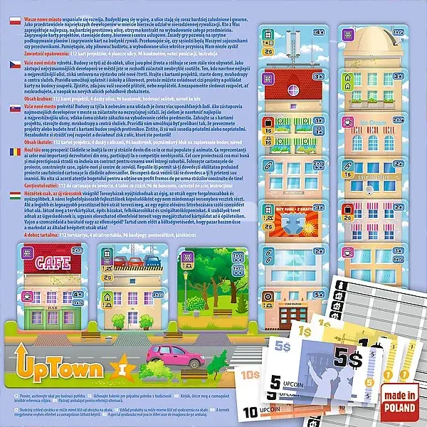 Uptown to rodzinna gra ekonomiczna, w której wcielisz się w rolę dewelopera, aby zbudować najbardziej prestiżową ulicę w mieście. Gra Uptown jest przeznaczona dla 2-4 graczy powyżej 10. roku życia, a przewidywany czas rozgrywki to 45 minut. Gra rozwija umiejętność logicznego myślenia, kreatywność i zdolność zdrowej rywalizacji.