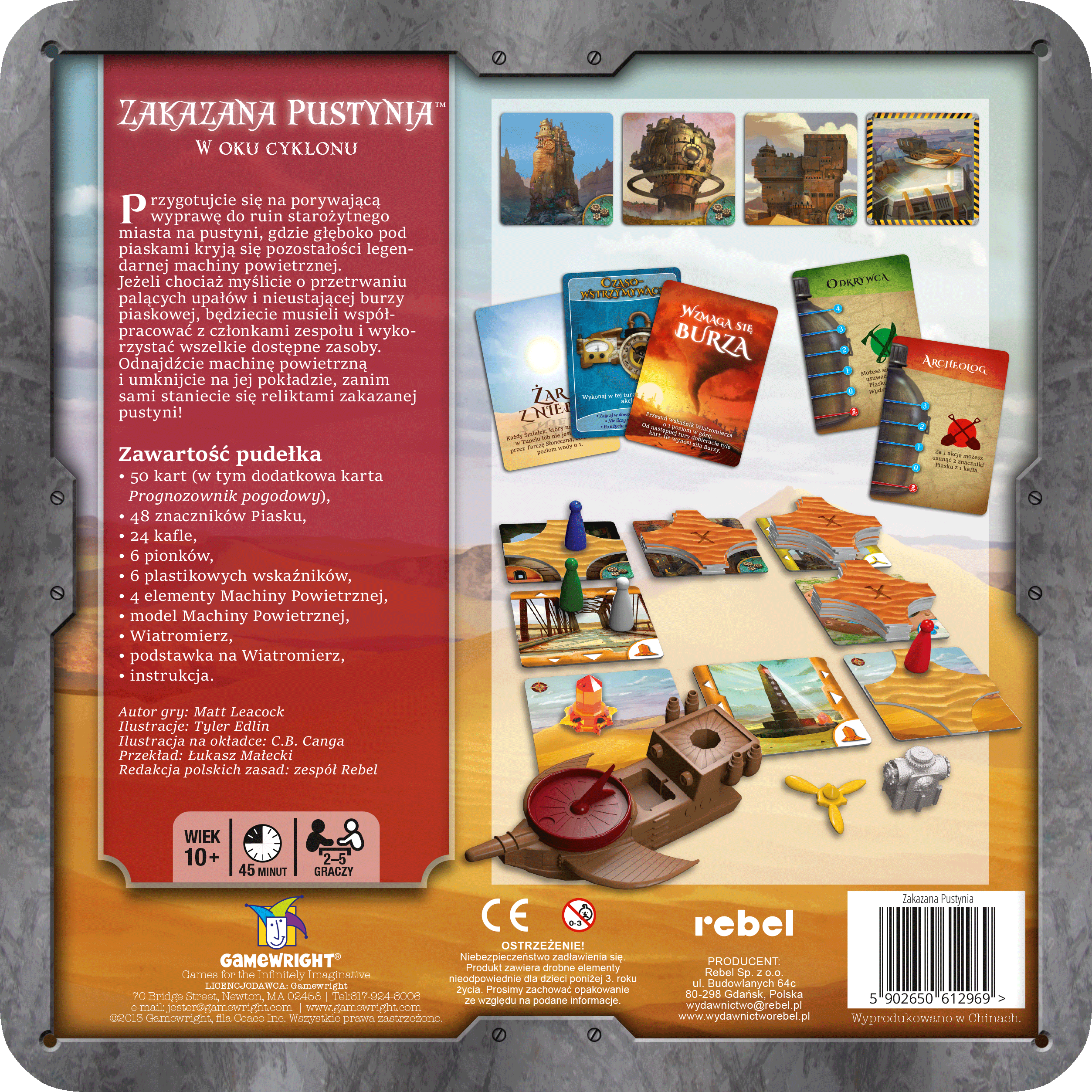 Zakazana pustynia to kolejny projekt w stylu popularnej Zakazanej Wyspy, w którym grupa uczestników jednoczy się przeciwko mechanice gry. Na samym początku graczom zostają przydzielone role, które definiują specjalne zdolności i początkowe miejsce na planszy. Następnie uczestnicy zabawy muszą skoordynować swoje działania w ten sposób, by jak najszybciej zdobyć zestaw potrzebnych przedmiotów, zanim kolejne fragmenty pustyni na dobre znikną im z oczu i już na zawsze pozostaną niedostępne.